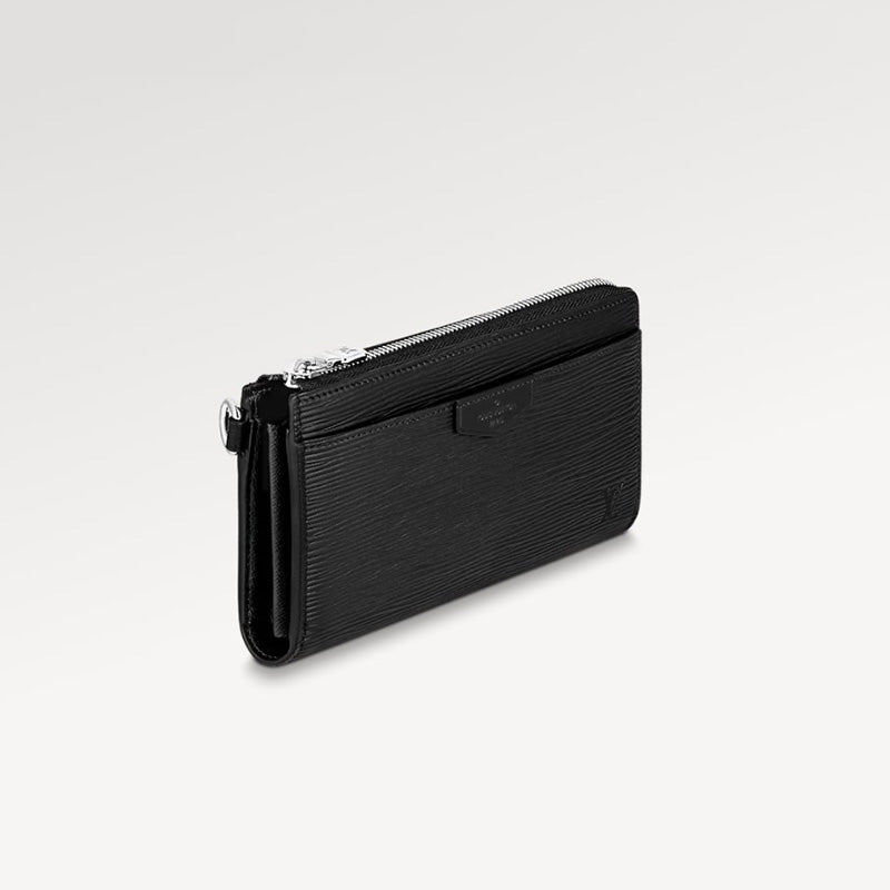 - ブラックのエピ・レザーとシルバーカラーのメタルパーツが洗練された雰囲気を演出する「ジッピー・ドラゴンヌ」。スマートフォンが複数入る内側のメインコンパートメントに加え、現金やコイン、カードを収納できる複数のスロットとポケットを配しました。取外し可能なリストストラップで手持ちでも、バッグに入れてもご使用いただけます。