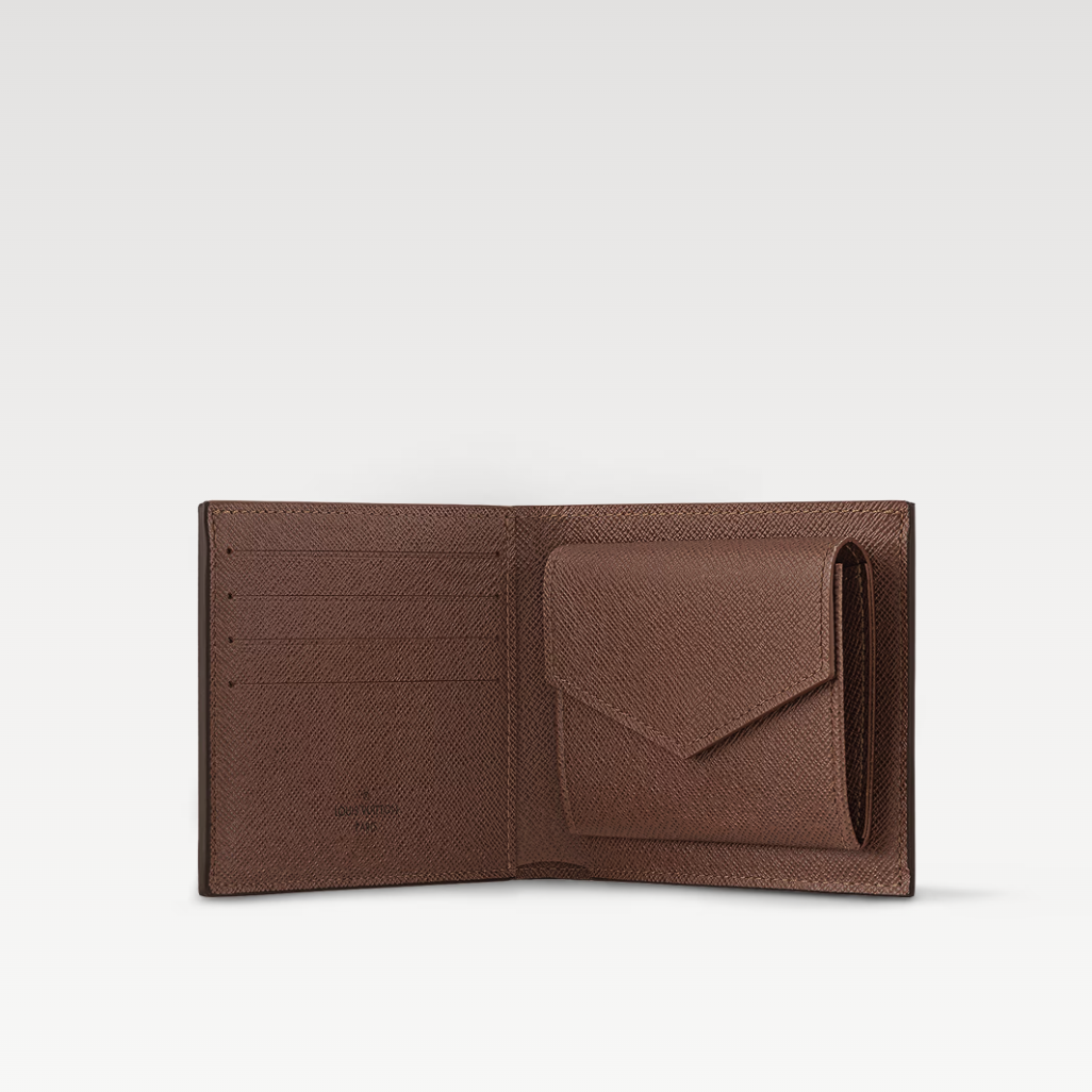 アイコニックなモノグラム・キャンバスを使用した財布「ポルトフォイユ・マルコ NM」は、ポケットにすっきり収まる機能的なスクウェア型で、カードや紙幣、コインなどをスマートかつエレガントに携帯することができます。