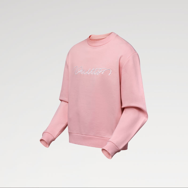 ペールピンクの軽量なオーガニックコットンを使用したロングスリーブのクルーネック。前面には質感のある立体的な刺繍で「Vuitton」シグネチャーをあしらいました。クラシカルな色合いで季節を選ばず多彩なスタイリングとミックス & マッチでき、フレッシュでカジュアルなひねりを装いに加えるアイテム。