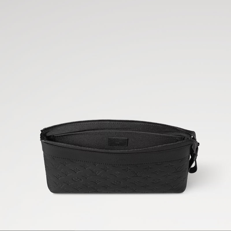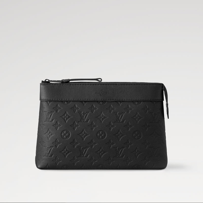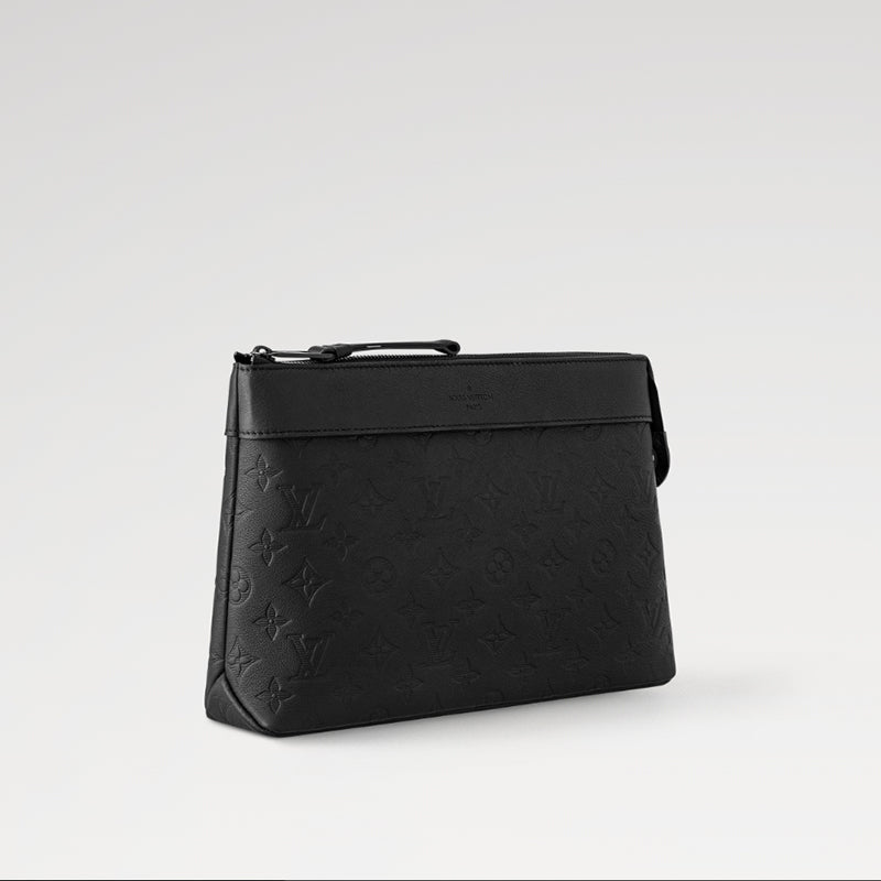さりげなくエンボス加工で施したモノグラム・パターンが特徴のモノグラム・シャドウ レザーで仕立てた「ポシェット・ヴォワヤージュ スープル」。この上なくしなやかなレザーが、柔らかな印象の丸みを帯びたデザインを引き立てます。クラッチキャリーでも、ストラップでリストキャリーでもお楽しみいただけるデザインです。バックポケットが機能性を高めます。